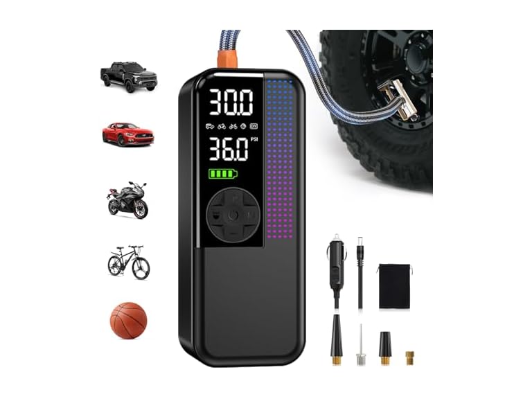 - Preset, Tap, Done: Our portable tire inflator has 4 smart preset modes for multi-purpose use. One-touch presets for Car, Bike, Motorcycle, and Balls. Easily switch modes and let the inflator stop automatically at your desired pressure