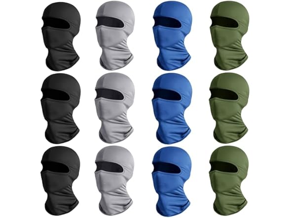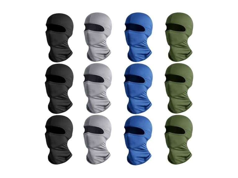 - (1) Wheebo 12 Pieces Balaclava Face Mask for Men Women Summer Cooling Neck Gaiter Cycling Caps, UV Protector Motorcycle Ski Scarf