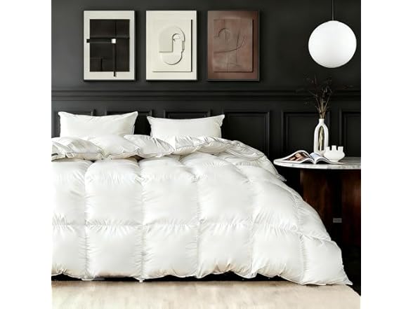 - ALL-SEASON USE - One Down Comforter, Four Seasons of Perfect Sleeps! This duvet insert is perfect for year-round use. We’ve turned fill amount into a science, precisely determining the optimal fill needed for an all-season comforter. Enhance your sleep experience with this white goose down fiber comforter. Designed for all-season warmth, the duvet insert provides the perfect balance of coziness in winter and breathability in summer, one comforter, endless climates.