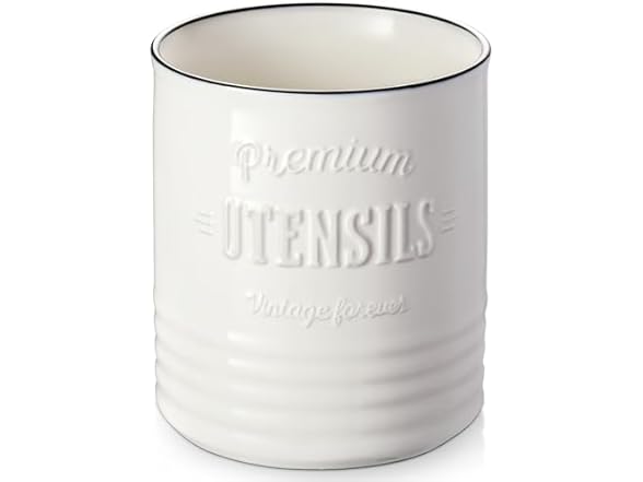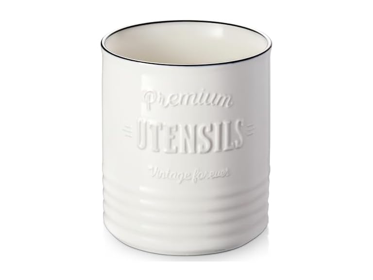 - Vintage Home Decor: This elegant and multi-purposed optimal utensil holder for kitchen counter, also serving as a utensil caddy or vase, is the best for those seeking a trendy, rustic farmhouse look. Add a little country charm to your home decor! If you’re looking for a memorable gift for your love, look no further, this will be a great gift she will use.