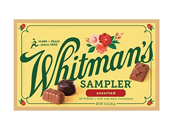 - WHITMAN'S SAMPLER Assorted Milk & Dark Chocolate Gift Box, 10 oz., is a delicious assortment of our best chocolates - share a box, make a memory!