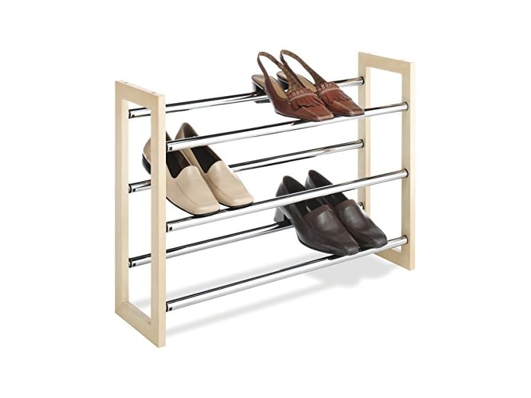 - Whitmor 3 Tier Expandable Shoe Rack -Stackable - Natural Wood and Chrome