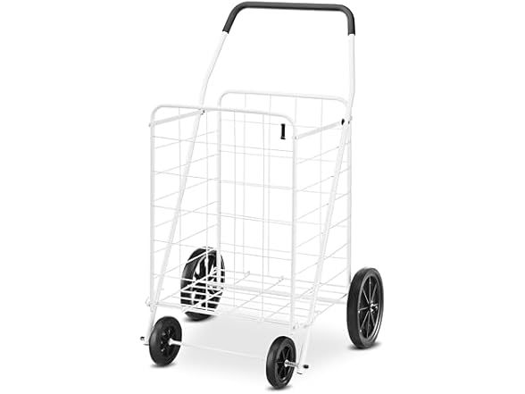 - Whitmor Deluxe Utility Foldable Shopping Cart with Wheels, 100 Lb Capacity, Heavy Duty Grocery Cart with Steel Frame, Foam Handle, Rolling Folding Utility Trolley for Grocery, Laundry, Travel, White