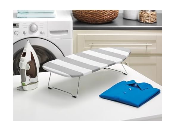 - (1) Whitmor Tabletop Ironing Board, Grey/White Striped Cover