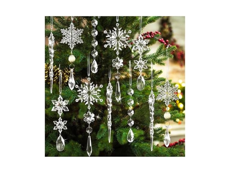 - (1) WHYLE Home Life 5/10Pcs Christmas Acrylic Snowflake Simulation Ice Pendants Xmas Tree Hanging Ornament New Year Christmas Decoration for Home Christmas(10pcs)