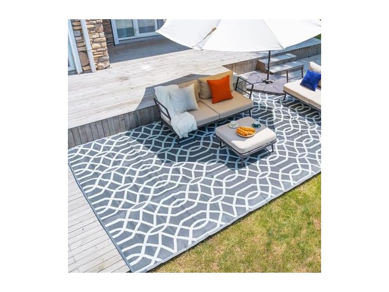 - CLASSIC DESIGN: The modern style pattern on our outdoor plastic straw rug is classic. It's easy to use on patio, balcony, deck, beach and garden.The outdoor patio rugs also work as area rugs, camping accessories, entryway rugs and camper accessories.