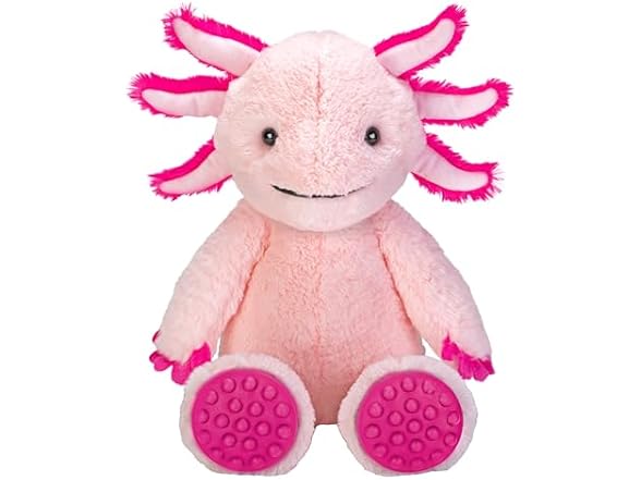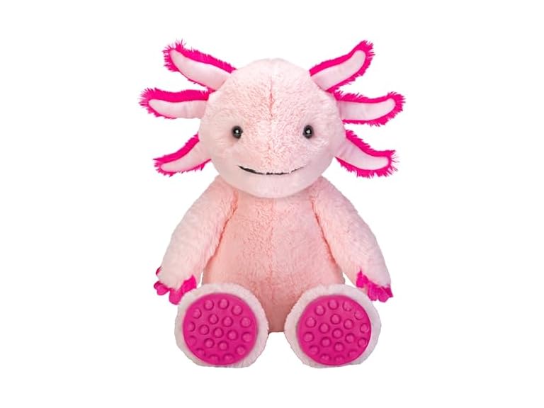 - Inspired by the fascinating axolotl, this plush captures its unique charm with soft, feathery gills, a sweet expression, and fidget popper feet for a fun and interactive sensory experience.