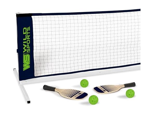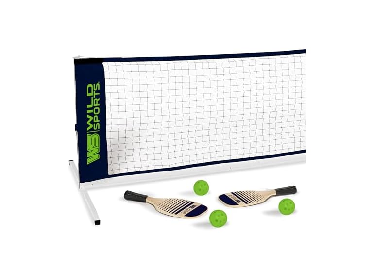 - (1) Wild Sports 10’ Driveway-Size Family Pickleball Net Set - with 2 Wooden Paddles and 3 Pickleballs