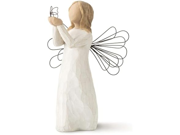 TITLE: Angel of Freedom SENTIMENT: Allowing dreams to soar GIFT-GIVING SUGGESTIONS: A gift for graduates or to celebrate life milestones and accomplishments. Willow Tree angels resonate with many cultures and ages of people. To some they represent protection, to some they are an outward reminder of inner peace, and to some they represent a way to remember those who have left this earth. Hand-carved figures reveal their expression through body gestures only... a tilt of the head, placement of the hands, a turn of the body. Since 1999, American artist Susan Lordi has worked in partnership with DEMDACO to produce, market and distribute Willow Tree , her line of carved figurative sculpture. From her studio in Kansas City, Lordi hand carves the original of each figure. This piece is cast from Lordi's original and painted by hand. Enclosed inside each fitted packaging box is a gift-giving card with piece title and sentiment on it. Each piece is intended to be open to interpretation from the viewer. "Willow Tree isn't so much about the tangible piece. It represents an emotion or it marks a memory." -Susan Lordi Ready to display on a shelf, table or mantel. To clean, dust with soft brush or cloth. Avoid water or cleaning solvents.