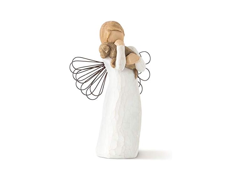 For those who share the spirit of friendship GIFT-GIVING SUGGESTIONS: A gift to celebrate friendships. Especially nice for pet lovers! Willow Tree angels resonate with many cultures and ages of people. To some they represent protection, to some they are an outward reminder of inner peace, and to some they represent a way to remember those who have left this earth. Hand-carved figures reveal their expression through body gestures only... a tilt of the head, placement of the hands, a turn of the body. Since 1999, American artist Susan Lordi has worked in partnership with DEMDACO to produce, market and distribute Willow Tree , her line of carved figurative sculpture. From her studio in Kansas City, Lordi hand carves the original of each figure. This piece is cast from Lordi's original and painted by hand. Enclosed inside each fitted packaging box is a gift-giving card with piece title and sentiment on it. Each piece is intended to be open to interpretation from the viewer. "Willow Tree isn't so much about the tangible piece. It represents an emotion or it marks a memory." -Susan Lordi Ready to display on a shelf, table or mantel. To clean, dust with soft brush or cloth. Avoid water or cleaning solvents.