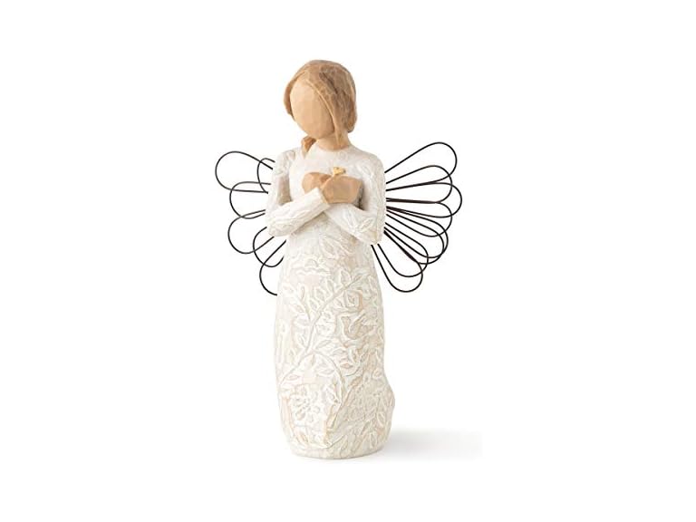 TITLE: Remembrance SENTIMENT: Memories… hold each one safely in your heart GIFT-GIVING SUGGESTIONS: A gift to express sympathy, comfort, remembrance and healing. Willow Tree angels resonate with many cultures and ages of people. To some they represent protection, to some they are an outward reminder of inner peace, and to some they represent a way to remember those who have left this earth. Hand-carved figures reveal their expression through body gestures only... a tilt of the head, placement of the hands, a turn of the body. Since 1999, American artist Susan Lordi has worked in partnership with DEMDACO to produce, market and distribute Willow Tree , her line of carved figurative sculpture. From her studio in Kansas City, Lordi hand carves the original of each figure. This piece is cast from Lordi's original and painted by hand. Enclosed inside each fitted packaging box is a gift-giving card with piece title and sentiment on it. Each piece is intended to be open to interpretation from the viewer. "Willow Tree isn't so much about the tangible piece. It represents an emotion or it marks a memory." -Susan Lordi Ready to display on a shelf, table or mantel. To clean, dust with soft brush or cloth. Avoid water or cleaning solvents.
