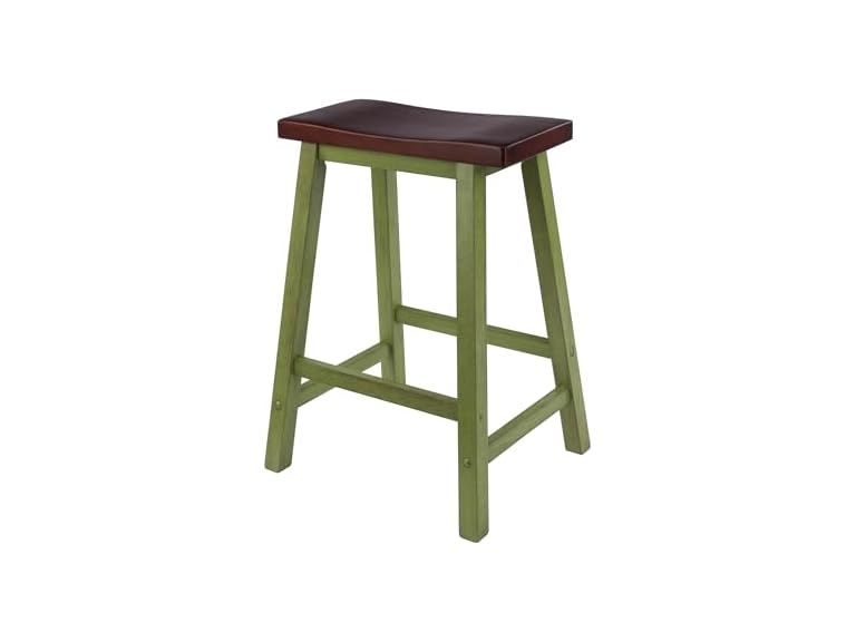- (1) Winsome Satori Saddle Seat 24In Counter Stool Rustic Green and Walnut Finish