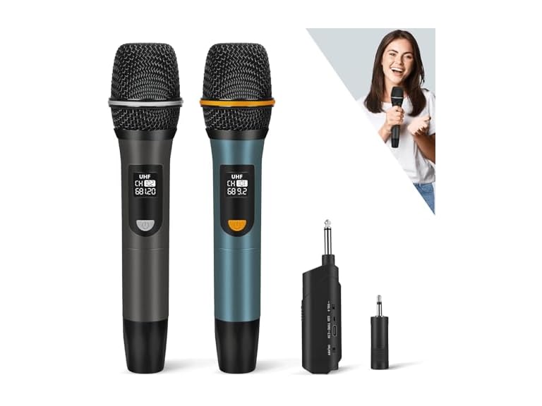 - Superior Audio Quality and Performance: The microphones utilize the latest UHF transmission technology to provide a stable and fast connection, with no delay or cut-off, ensuring a smooth user experience. Equipped with high-sensitivity professional cardioid dynamic capsules that pick up clear, pure, and full sound while effectively eliminating background noise and howling. Distortion <0.5%
