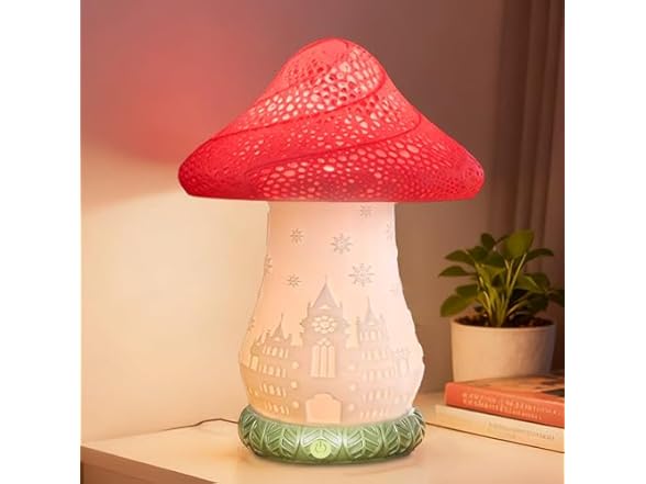 - Mushroom Design for Magical Decor: This whimsical mushroom lamp doubles as a table lamp, bedside lamp, and eye-catching home decor piece. The unique mushroom-shaped shade features intricate castle and snowflake embossing, adding a fairy-tale vibe to your bedroom decor. Perfect as a small lamp for night stands, it brings charm to any space while serving as a functional bedroom lamp