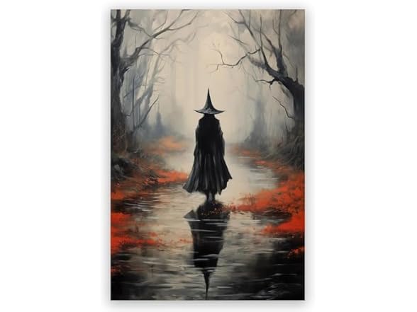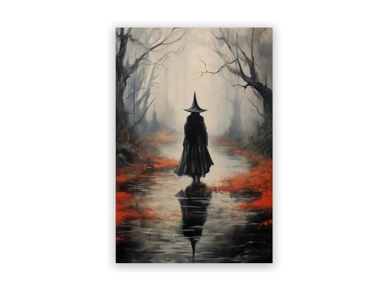 - (1) JsGwyllion Witch in haunted forest Vintage gothic wall painting print Horror dark academy witch decoration Halloween spooky vintage gothic aesthetic home wall decoration16x24in Unframed, style-3
