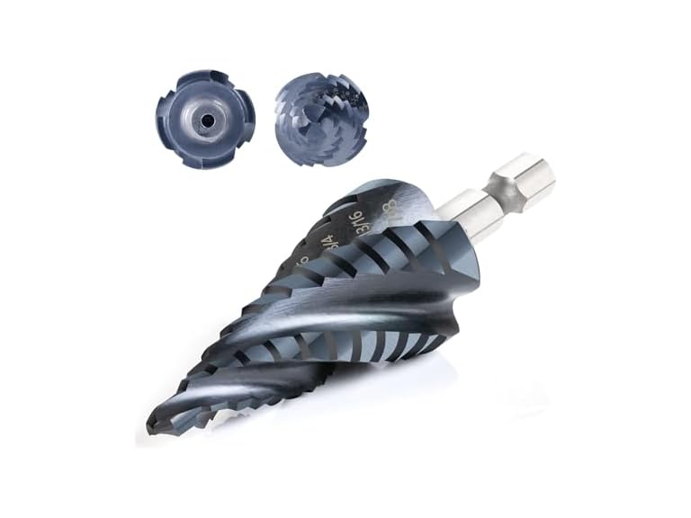 - SUIT YOUR NEEDS: 12 total step sizes include3/16",1/4", 5/16", 3/8", 1/2", 9/16", 5/8", 11/16", 13/16", 7/8".135° cutting angle reduces self-wear and provides a larger stress area, resulting in cleaner, more efficient drilling for home repairs, and metalworking.