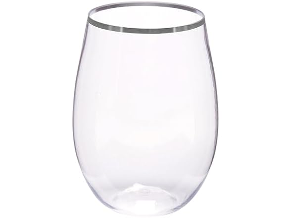 - Contains: 64-Pack of stemless wine glasses with silver rim