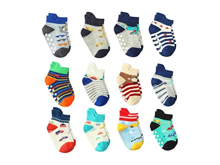 - (1) Wobon Cottock 12 Pairs Toddler Boy Ankle Socks, Anti Slip for Kids (12 Pairs, 3-5T, Assorted Colors)