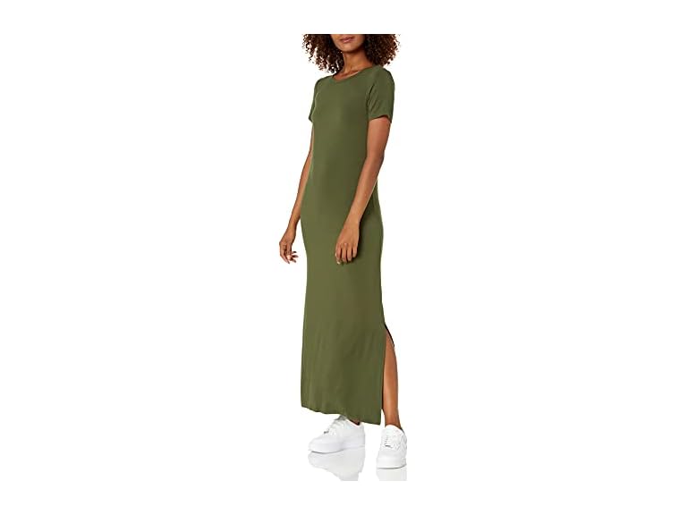 - (1) Amazon Essentials Women's Jersey Standard-Fit Short-Sleeve Crewneck Side Slit Maxi Dress, Forest Green, XX-Large