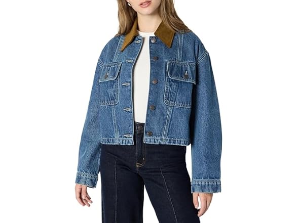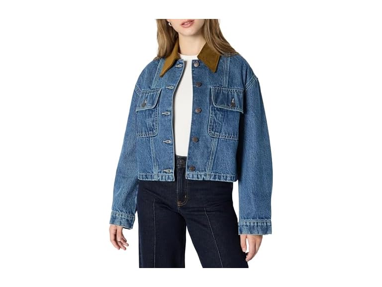 - CROPPED DENIM JACKET WITH CONTRAST COLLAR: Heritage-inspired jacket with corduroy collar in a modern abbreviated silhouette that works equally well over jeans or dresses