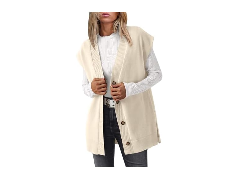 - CHIC DESIGN: The oversized cardigan is designed with v neck, button up, open front, solid color, ribbed knit, cap sleeve, side slit, loose fit, our long vest will be your faves season after season