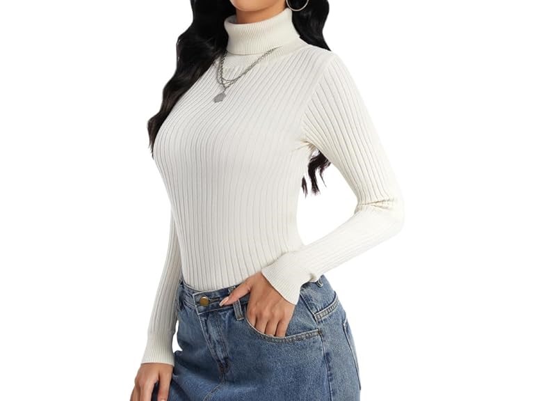 - 【SOFT RIBBED KNIT 】Made with quality material for a soft and comfortable feel, our women turtleneck sweater with durable stitching feels like a dream against skin. It’s quite stretchy, moisture-wicking in terms of its ribbed knitted fabric, keeping you cozy and warm all day long.