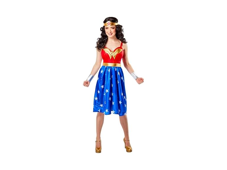 - Wonder woman costume dress, belt, gauntlets, and tiara