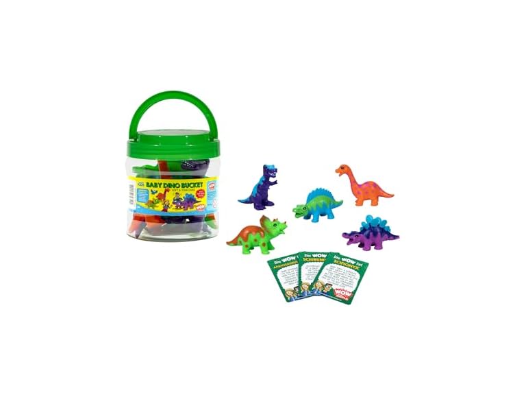 - (1) Goliath Wow in The World Baby Dino Bucket | Soft and Squeezable | Kids Play Dinosaurs | Learning Through Play | Includes 5 Baby Dinosaur Toys and 3 Fun Fact Cards