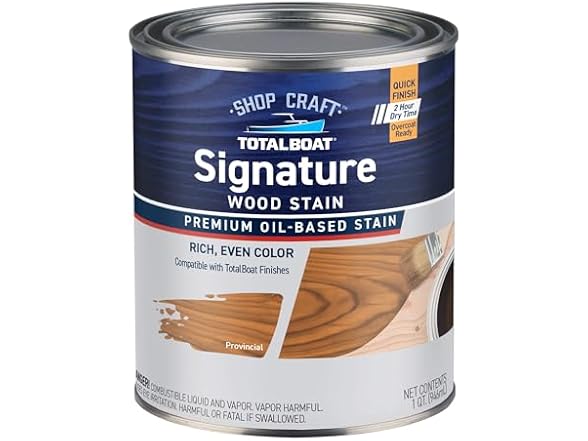 - TotalBoat Shopcraft Signature Wood Stain | Fast-Dry Oil-Based Penetrating Stain Finish for Interior Wood, Furniture, Trim, Shelves, and Woodworking Projects | Quart, Provincial