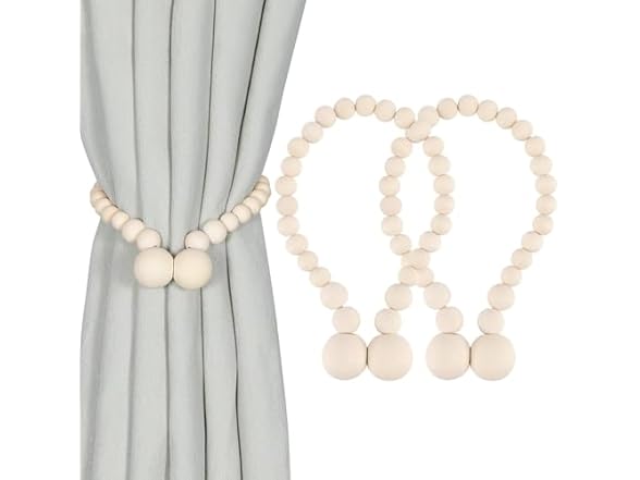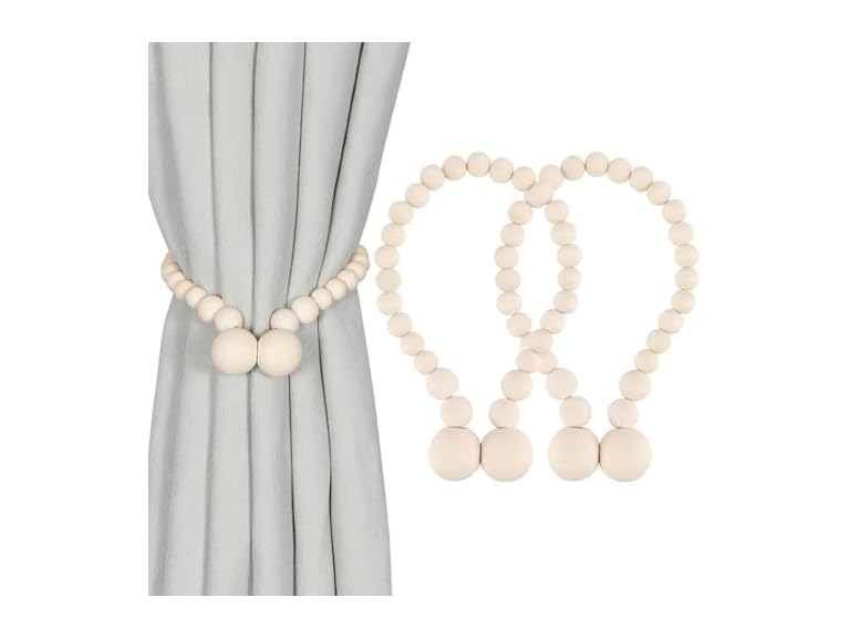 - (1) Wooden Bead Curtain Tiebacks, Decorative Curtain Holdbacks, 2 Pack, Cream White