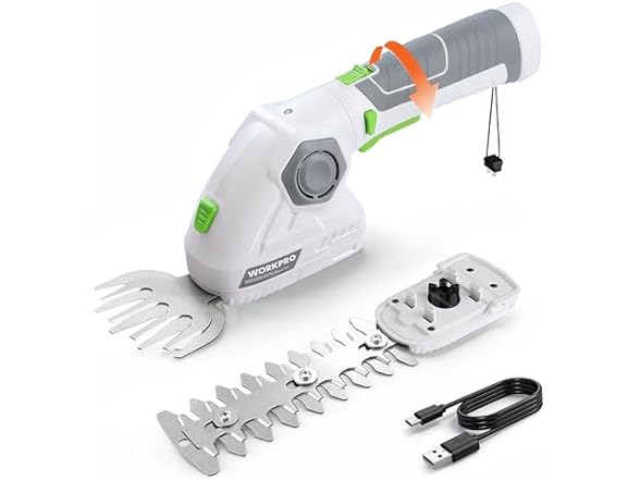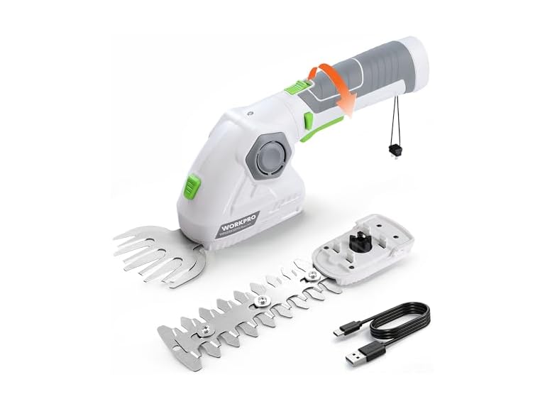 - WORKPRO Cordless Grass Shear & Shrubbery Trimmer - 2 in 1 Handheld Hedge Trimmer 7.2V