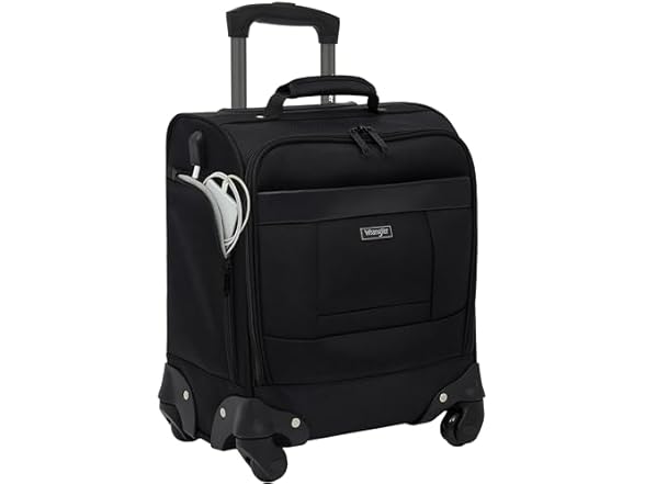 - Wrangler 17" 4-Wheel Spinner Underseat Carry-On Luggage with USB Side Port and Laptop Compartment