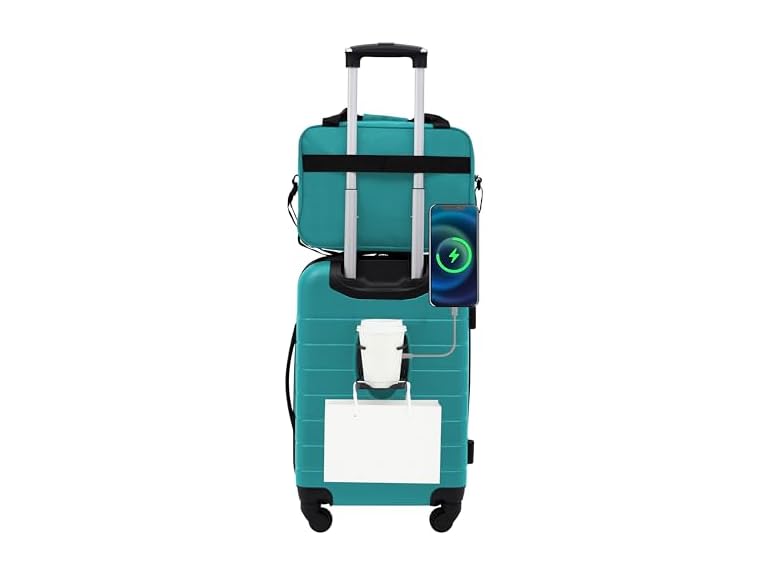 - Patented 3-in-1 cup holder, USB port, and phone holder located in back of each luggage unit for travel convenience