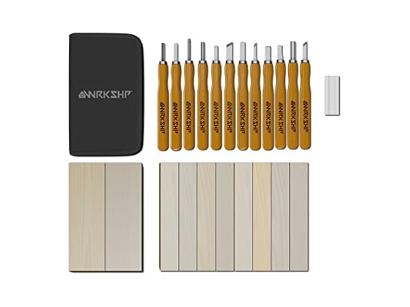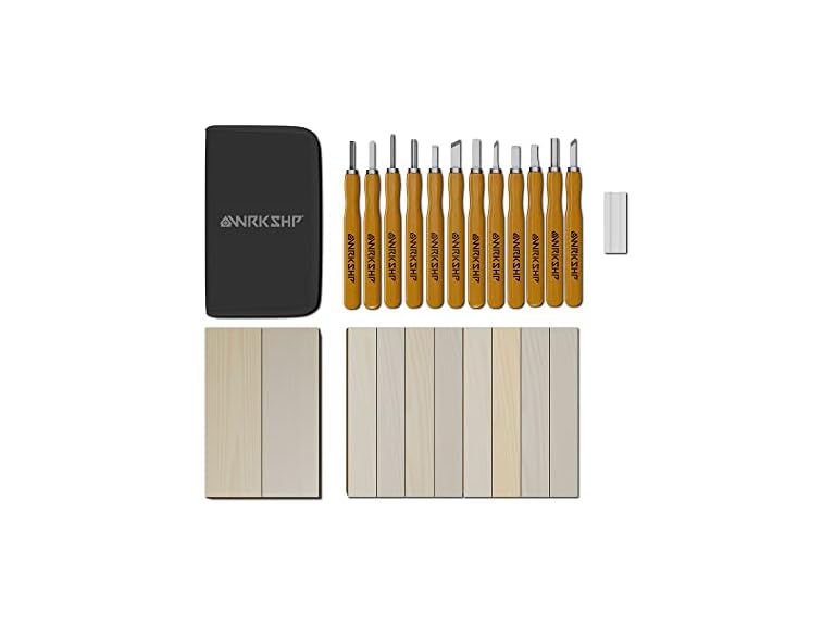 - (1) WRKSHP Wood Carving Tools - 12 PCS - Whittling Kit for Beginners - Wood Carving Kit - Incl. 1x Whetstone & 10 Wooden Blocks - Wood Carving Knives