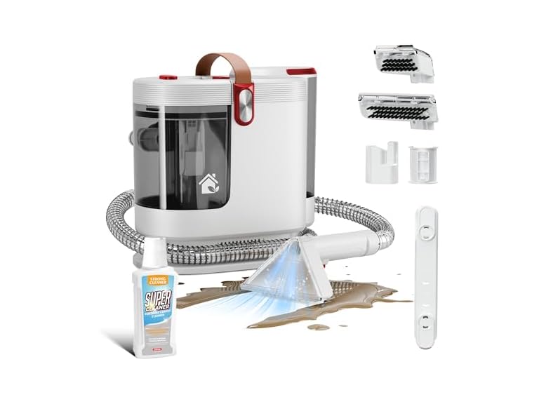 - (1) WURESE Portable Upholstery and Carpet Cleaner Machine, 15Kpa Spot Cleaner Deep Cleans Pet Stains, Couch Cleaner with 3 Tools and Self-Cleaning System for Area Rugs, Furniture, Stair, Car, Red