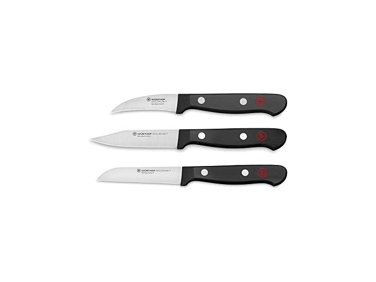 - WÜSTHOF GOURMET SERIES – 3 Piece Knife Set with triple riveted synthetic polypropylene handles that resist fading, discoloration, heat and impact. Precisely laser-cut stamped knives offer superb quality and value