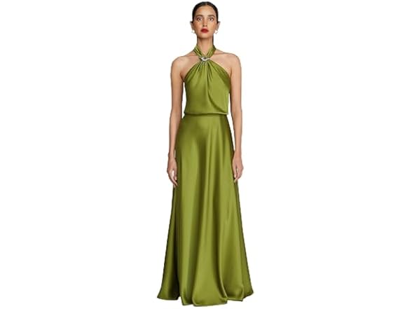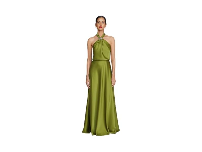 - (1) HALSTON Wynn Gown in Charmeuse Moss Green