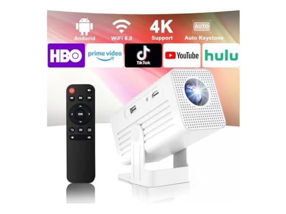 - 【Smart Projector Built in Apps】Powered by a built-in Android 13.0 system, this smart projector comes with a streaming app that pops up a variety of applications by simply connecting to WiFi, including support for Prime Video, Hulu, YouTube, Disney+, Apple TV and Lives and more.