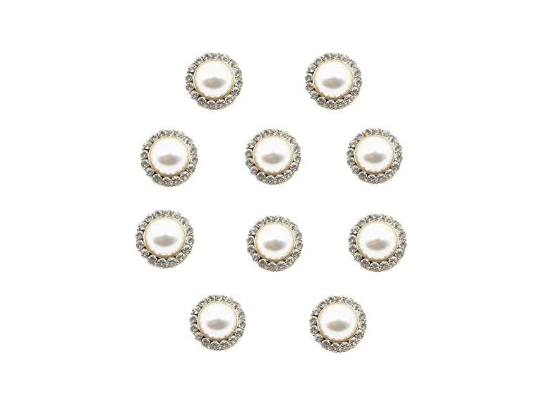 - (1) Ximkee 10pcs Round Pearl Buttons with Shank for Sewing Gold Button Crafts for Clothes Shirts Suits Coats Sweaters Wedding Dress Clothing Decorations (Rhinestone, 28L/18mm)