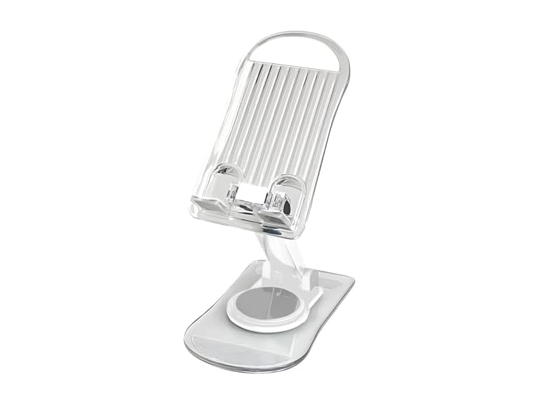 - (1) XIYIASUN Adjustable Angle Clear Cell Phone Stand,Acrylic Cell Phone Stand for Desk,360 Degree Rotating Foldable Acrylic Phone Holder for iPhone Samsung Galaxy