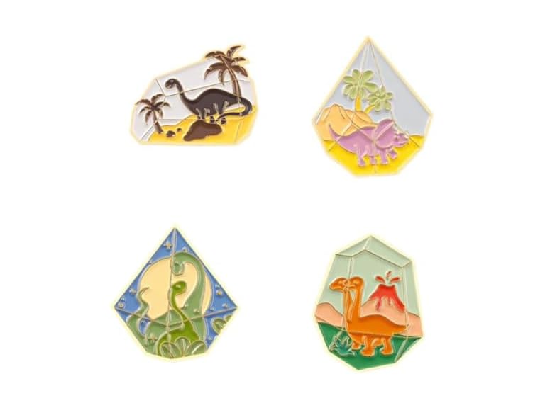 - (1) XKYDYF 4 PCS Cute Animal Enamel Brooch Lapel Pin Cartoon Irregular Shape Enamel Pins Dinosaur Pattern Series Brooches for Badges Hats Bags