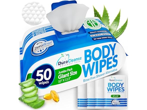 - No Rinse clean anytime - XL bathing wipes for quick refresh when you can’t shower.