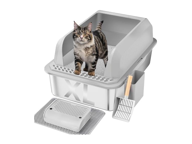 - Extra Large Size: The XL stainless steel cat litter box is perfect for large cats, measuring 23.7 x 16 x 11.6 inches. The large litter tray's 20-liter capacity reduces the need for frequent cleaning, meaning you can work or travel for up to 30 days without having to worry about changing litter