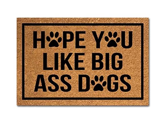 - (1) XTDJJKK Funny Coir Doormat Hope You Like Big Ass Dogs Front Door Mat Entryway Outdoor Mat with Heavy Duty Front Porch Welcome Mats Entry Natural Coconut Brown Mat 23.6 x 15.7 Inch