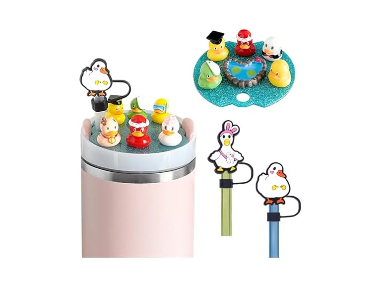 - (1) Xyntara Duck Stanley Cup Lid Accessories 12pcs Fun, 10mm Silicone Straw Covers Cap for Tumblers,Stanley Charms for Handle,Cool Duck Straw Cover