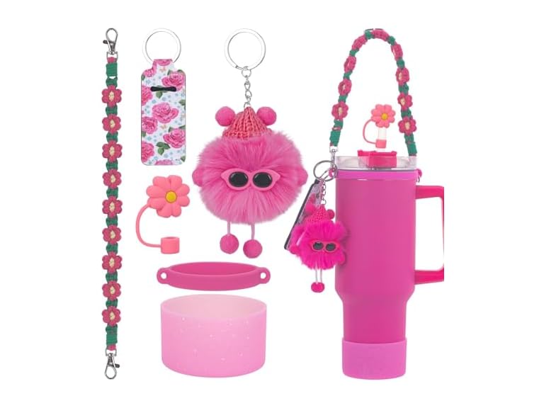 - (1) Xyntara Pink Accessories for Stanley Cup 40&30oz Tumbler with Handle,Including Straw Topper,Water Bottle Handle Strap,Chapstick Holder, Boot, Keychain Charms,Straw Toppers for Stanley Cups(Pink)