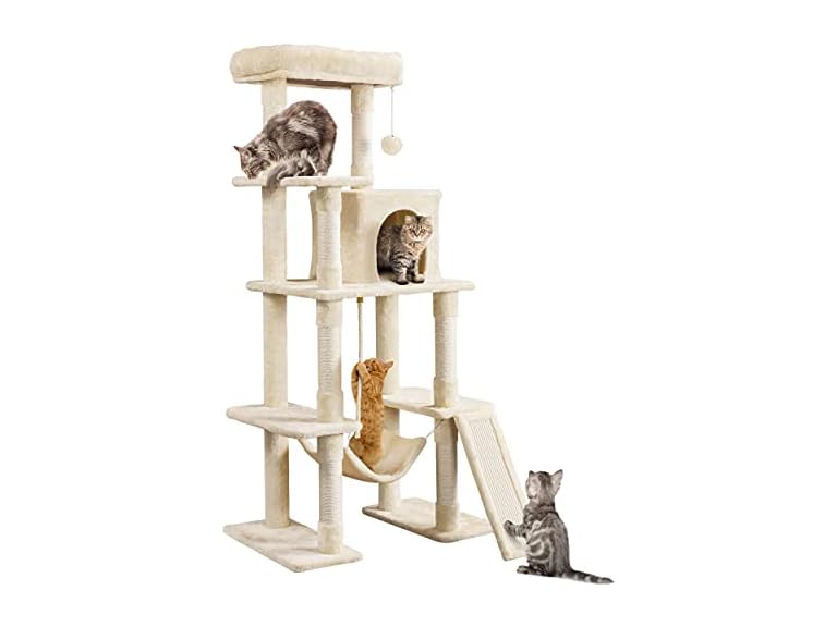 - (1) Yaheetech Cat Tree, 63 Inches Multi-Level Indoor Cat Play Structure with Scratching Posts, Hammock, and Dangling Ball