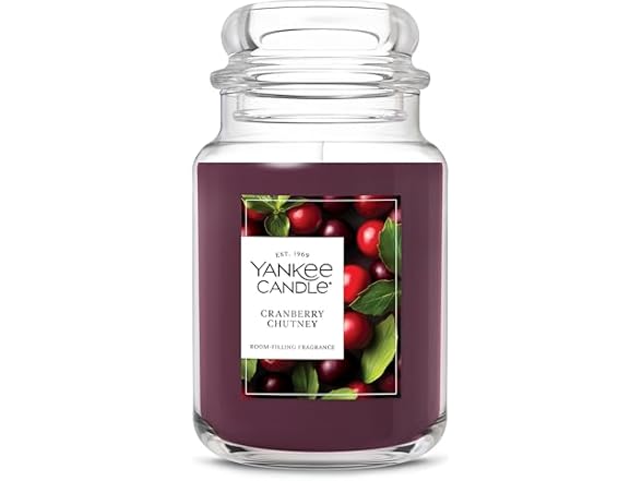 - (1) Yankee Candle Cranberry Chutney, Scented Candle, 22oz Large Jar with up to 150 Hour Burn Time, Giftable