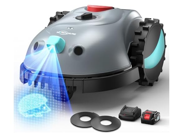- 【Intelligent Visual Navigation】 Thanks to its integrated bumper sensor, visual sensor, and advanced AI technology, our robotic lawnmower navigates using a camera. It distinguishes between grass and non-grass areas and can detect up to 150 different obstacles. If an obstacle is in its blind spot, the robotic lawnmower automatically adjusts its path after a collision is detected.