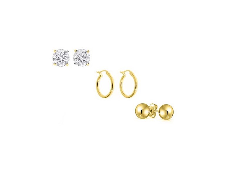 - (1) Yeidid Set of 3: Sterling Silver Hoop, Crystal Stud, and Ball Stud Earrings in either Sterling Silver, 18K Gold Plated or 18K Rose Gold Plated